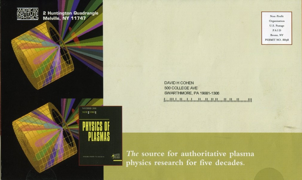 The winter/spring 2007 brochure for the journal, Physics of Plasmas, published by the American Institute of Physics, featured numerous images from our 2005 paper on hohlraum modeling. All of these images were made using the VisRad view-factor code written by Prism Computational Sciences.