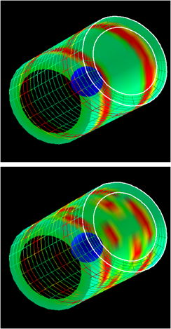 We later did a detailed exploration of the effects of beam pointing and hohlraum geometry on radiation conditions inside hohlraums. We published this study in "Numerical modeling of hohlraum radiation conditions" by Cohen, Landen, & MacFarlane, Physics of Plasmas, 12, 2703 (2005). |