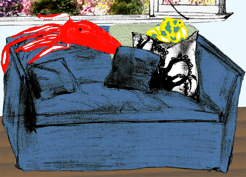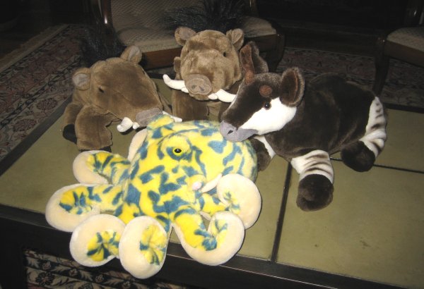 Telephone sheep, felted squid, plush hairy lobster.