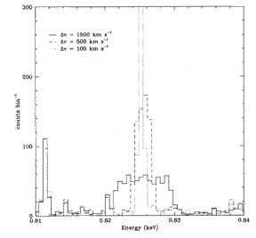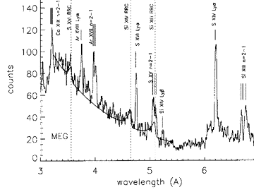 | All these data are indicative of the new era of high-resolution astrophysical spectroscopy. Many diagnostics based on line intensities and even profiles will be available to X-ray astronomers for the first time. They will provide information about temperatures, ionization levels, densities, column densities, bulk velocities, chemical composition, and radiation field properties. |